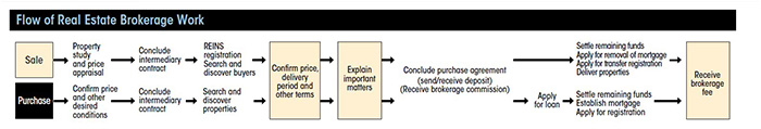 The Building Lots and Buildings Transaction Business Law was revised in 1980 in response to social demand to clarify the contractual relationship between the parties, establishing a general and exclusive broker contract system.* Documentation for certain items was required and exclusive broker contracts were registered with an information network organization. Then in 1990, a dedicated exclusive broker contract system* was started to promote the sharing of property information, making it mandatory to register these contract transactions on REINS (Real Estate Information Network System), a certified information network organization integrating the information network organizations by supply/demand region.