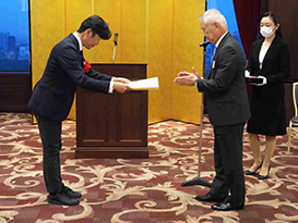 当協会の吉田淳一理事長による表彰及び祝辞 |